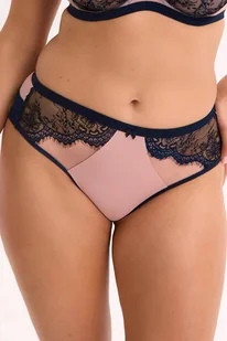 Figi Frida 1274 Granatowy to wyjątkowe połączenie klasycznej elegancji i komfortu. Stabilna koronka w kolorze wyraźnego granatu subtelnie zdobi boki przodu oraz górną część tyłu, nadając modelowi unikalnego charakteru. Transparentny tiul elastyczny w dolnej części tyłu zapewnia lekkość i doskonałe dopasowanie do sylwetki. Boczna część przodu została wzbogacona o stabilny tiul, który dodaje figom unikalnego akcentu. Miękka mikrofibra w środkowej części przodu oraz na górze tyłu gwarantuje wygodę noszenia, a bawełniany klinek dba o maksymalny komfort.