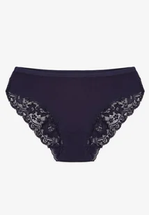 Granatowe Majtki Figi z Koronkowymi Wstawkami Amiora