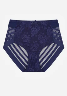 Granatowe Majtki Figi z Wysokim Stanem Zdobione Koronką i Siateczką Helieth