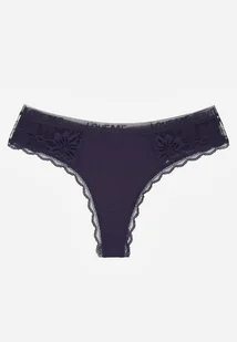 Granatowe Majtki Stringi z Subtelną Koronką z Bawełną Adriedah