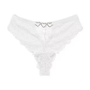 Koronkowe stringi z ozdobnymi serduszkami - Biały S