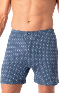 Luźne bokserki męskie niebiesko-turkusowe MXC 945 w drobny wzór. Miękka, wewnętrzna guma w pasie. Długa swobodna nogawka (dł. 39 cm), lekko okalająca uda. Bielizna wykonana z niezwykle miękkiej, wysokiej jakości bawełny. Bardzo wygodny krój - dla pełnej swobody i komfortu dodano wstawkę w kroku.