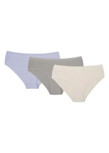Zestaw majtek Nansa 3-pak to synonim klasyki i wygody. W skład pakietu wchodzą trzy pary majtek w stonowanych kolorach: jasnoniebieskim, beżowym i szarym. Ich jednolity kolor i gładka struktura sprawiają, że są doskonałym wyborem do codziennego użytku, pasując do różnych stylizacji i okazji. Wykonane w 95% z bawełny i 5% elastanu, majtki Nansa oferują świetne dopasowanie, elastyczność oraz oddychalność.