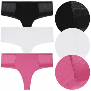 Majtki damskie brazyliany z siateczkowym wykończeniem – 3-pak Zestaw trzech fig typu brazyliany z siateczkowymi bokami. Wykonane z miękkiej bawełny z elastanem, zapewniają komfort i zmysłowy wygląd na co dzień i na specjalne okazje. ❤️ Figi damskie brazyliany w 3-paku to idealne połączenie komfortu i kobiecego stylu. Wykonane z miękkiej, oddychającej bawełny czesanej z dodatkiem elastanu, dopasowują się do ciała i zapewniają wygodę przez cały dzień. ❤️ Siateczkowe boki nadają bieliźnie lekkości, nowoczesnego wyglądu i subtelnego charakteru.