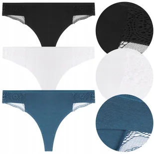 Majtki stringi damskie z koronką – 3-pak, WIELOKOLOROWY Zestaw trzech damskich stringów z delikatną koronką. Lekkie, wygodne, niewidoczne pod ubraniem – idealne na co dzień i do dopasowanych stylizacji. ❤️ Damskie stringi z koronką to bielizna, po którą sięga się bez zastanowienia – wygodna, lekka i stylowa. ❤️ Wykonane z miękkiego, elastycznego materiału, idealnie dopasowują się do sylwetki i nie powodują dyskomfortu. ❤️ Delikatna koronka nadaje im subtelny, kobiecy charakter, podkreślając ich elegancki wygląd.