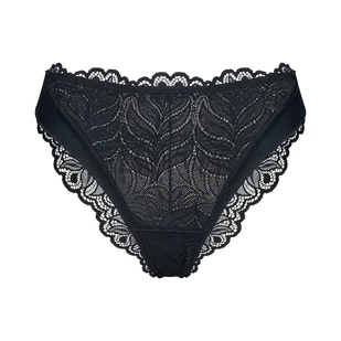 Majtki figi AURORA Esotiq | czarny Delikatne figi Aurora w klasycznej czerni łączą ponadczasową elegancję z codzienną wygodą. Model został zaprojektowany z myślą o kobietach, które cenią subtelne detale i komfort noszenia – zarówno na co dzień, jak i na wyjątkowe okazje. Przód zdobi finezyjna koronka o motywie liści, podszyta lekką siateczką, która nadaje całości zmysłowej lekkości. Gładkie, miękkie wykończenia z mikrofibry o satynowym efekcie zapewniają przyjemne dopasowanie do sylwetki, bez uczucia ucisku. Tył wykonano z koronki, która estetycznie układa się na pośladkach i podkreśla kobiece kształty.