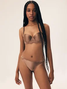 Figi Brillant Esotiq w odcieniu złotego brązu to połączenie subtelnej elegancji i wygody. Przód majtek wykonany jest z gładkiego materiału, który pięknie dop...