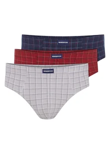 Trzypak męskich slipów Henderson to propozycja dla tych, którzy cenią sobie styl i wygodę. Połączenie kratki i różnych kolorów granatu, czerwieni i szarośc...