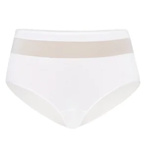 - Klasyczne figi damskie w kolorze białym- Majtki posiadają wysoki stan, sięgają do pępka- Maskują kobiecy brzuszek i wystające boczki- Z przodu zestawione s...