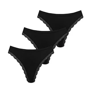 Marilyn Poupée Infinity stringi z bawełny z obszyciem koronkowym, czarne, rozmiar L, 3 sztuki w opakowaniu, czarny, L
