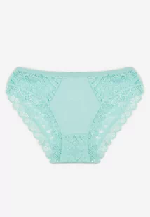 Miętowe Majtki Figi Ozdobione Koronką w Kwiatowy Wzór Belenia
