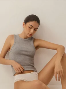 Majtki typu figi, wykonane z prążkowanej, bawełnianej dzianiny.