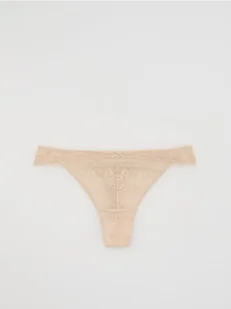 Reserved - Koronkowe majtki typu stringi - kremowy