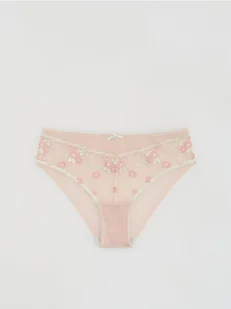 Reserved - Majtki figi z haftem - beżowy