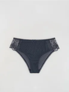 Reserved - Siateczkowe stringi z haftem - granatowy