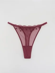 Reserved - Siateczkowe stringi z haftem - fioletowy