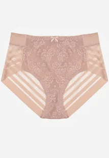 Różowe Siateczkowe Majtki Figi High Waist z Koronkowymi Zdobieniami Heylih