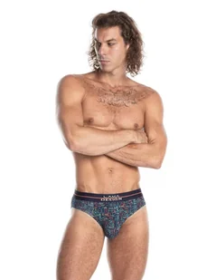 Slipy męskie wykonane z wzorzystej bawełny. W pasie szersza nieuciskająca guma z logo firmy. Pakowane po dwie sztuki w pudełko. Skład: 95% bawełna, 5% elastan.