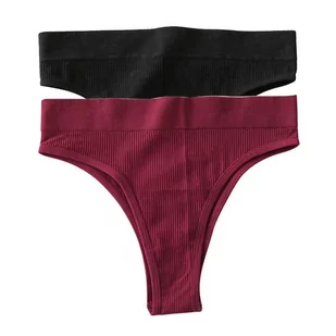 Stringi z wysokim stanem 2 szt. - Czarny + czerwony L/XL