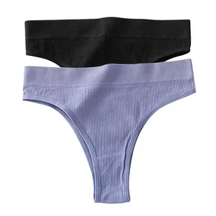 Stringi z wysokim stanem 2 szt. - Czarny + niebieski L/XL