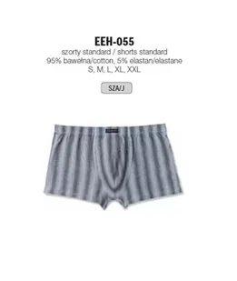 Szorty męskie z anatomicznie wyprofilowanym frontem. Wykonane z miękkiej bawełny z dodatkiem elastanu (5%). Elegancki, miękki nadruk.
