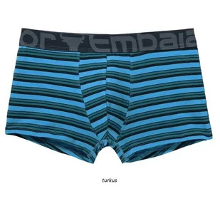 Dopasowane szorty męskie, wykonane z miękkiej bawełnianej dzianiny. Wyprofilowany front i zewnętrzna guma w pasie. Miękki nadruk w nowoczesne paski. Materiał: 95% bawełna, 5% elastan.