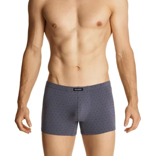 W 3-packu znajdziesz obcisłe bokserki męskie w kolorach: szarym i niebieskim (pokryte maleńkich rozmiarów wzorkami w prostokąty) oraz granatowym (gładkie). B...