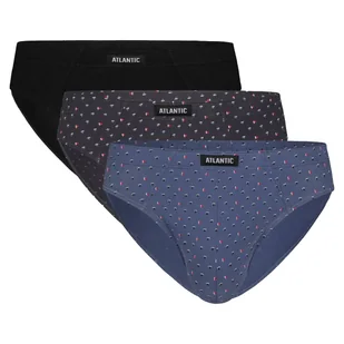W 3-packu znajdują się slipy męskie w trzech wydaniach: jasno-denimowe i grafitowe pokryte są niewielkich rozmiarów wzorkami, natomiast czarne są gładkie. Sl...