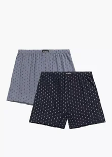 Luźne bokserki męskie o uniwersalnym kroju zapewniające wygodę i swobodę ruchów. Nieuciskająca guma w talii oraz standardowej długości nogawki. Wzór w zegarki. Pakowane po 2 sztuki. Skład: 100% bawełna.