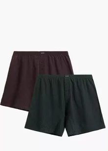 Bokserki ze średniej wysokości stanem i standardowej długości nogawkami, wykończone są w pasie miękką i nieuciskającą gumą wewnętrzną. Przyjemna w dotyku bawełna. W opakowaniu 2 szt. Skład:100% bawełna.