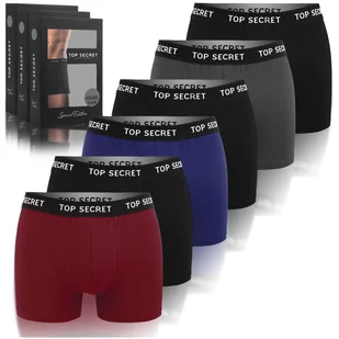 TOP SECRETBokserki męskie - 6 sztuk ͏͏͏͏Skład materiału: 95% bawełna, 5% Elasthan ͏͏͏͏Rozmiar: XLSzerokość elastycznego pasa bez rozciągania: ok. 41 cmMaksymalne rozciągnięcie elastycznego pasa: ok. 55 cmDługość zewnętrznej nogawki spodni: