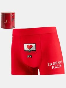 Bokserki walentynkowe w puszce 2XL czerwony Odkryj magię miłości z naszymi bokserkami! ❤️ Wprowadź do swojej garderoby wyjątkowe męskie bokserki wykonane z miękkiej, przyjemnej w dotyku bawełny. Dopasowany fason i elastyczny, nieuciskający pas doskonale układa się na ciele, zapewniając komfort noszenia przez cały dzień. Intensywny czerwony kolor z zabawnym, walentynkowym nadrukiem sprawia, że bokserki idealnie nadają się na prezent dla ukochanej osoby. Każda para zapakowana jest w ozdobną puszkę, dzięki czemu stanowi gotowy, stylowy upominek na Walentynki lub inną wyjątkową okazję. Praktyczne atuty produktu: