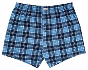DUŻE MĘSKIE LUŹNE BOKSERKI - W KRATKĘ Luźne bokserki męskie firmy Andriu, to odpowiednia propozycja dla Panów ceniących ciekawą kolorystykę oraz komfort i wygodę noszenia. Klasyczny krój, niekrępujący ruchów nadaje im funkcjonalności i swobody użytkowania. Z przodu ozdobne logo. W pasie zastosowano elastyczny ściągacz, zapinane na dwa guziki z przodu. Bokserki wykonane z wysokogatunkowej - 100% bawełny.