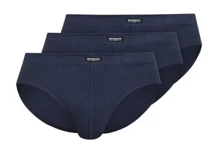 Zestaw slipek męskich składający się z trzech jednakowych sztuk koloru granatowego. Model ten posiada w pasie gumę obszytą bawełną Bardzo dobrej jakości mate...