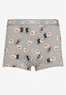 Jasnoszare Bawełniane Majtki Bokserki z Napisem i Szeroką Gumką Nelicia