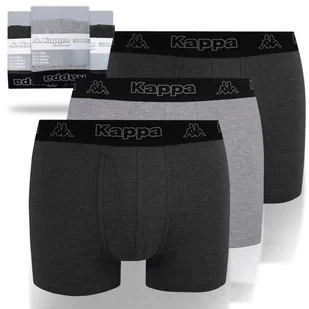 KAPPA Bokserki Męskie 3 sztuki Skład: Antracyt: 55% Bawełna; 40% Poliester, 5% Elastan Szare: 90% Bawełna; 5% Elastan, 5% Wiskoza Rozmiar L Szerokość na gumce bez naciągania ok: 33 cm Maksymalne naciągnięcie w gumce ok: 46 cm Długość nogawki zewnętrznie ok: