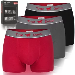 MUSTANG Bokserki Męskie 3 sztuki Skład: 95% Bawełna; 5% Elastan Rozmiar M Szerokość w pasie ok.: 33 cm Maksymalne naciągnięcie gumy ok.: 49 cm Długość nogawe...