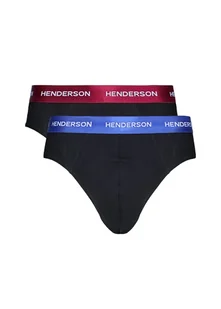 Cechy: zestaw 2 par slipów w kolorze czarnym klasyczny, dopasowany krój elastyczna guma w pasie z logo Henderson wygodne i stabilne dopasowanie uniwersalny model na co dzień Skład: 93% bawełna, 7% elastan Dostępne rozmiary: M–3XL