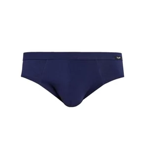 - Męskie slipy w kolorze granatowym.- Posiadają prosty, klasyczny fason bez zdobień.- Wokół ud slipy są wyżej wycięte.- W pasie znajduje się delikatne logo f...