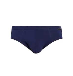 - Męskie slipy w kolorze granatowym.- Posiadają prosty, klasyczny fason bez zdobień.- Wokół ud slipy są wyżej wycięte.- W pasie znajduje się delikatne logo firmy.
