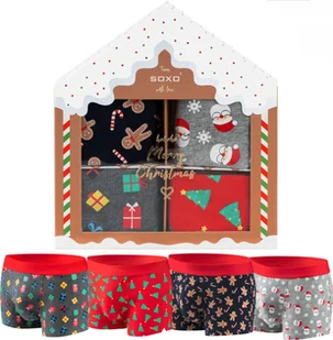 Soxo Zestaw 4x Bokserki męskie świąteczne na Boże Narodzenie idealny pomysł na prezent XL
