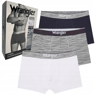 █ Wrangler Canva 3 Pack Cotton Elastane Trunks White. Print. Navy MIĘKKIE ELASTYCZNE BAWEŁNIANE BOKSERKI MĘSKIE rozmiar L █ Pięciopak bokserek firmy Wrangler Model: Canva 3 Pack Cotton Elastane Trunks Krój dopasowany Na gumce logowane czerwonym napisem Wrangler Kolor: granatowy, szary i biały (white/print/navy) Bardzo miękka, przewiewna i elastyczna bawełniana dzianina z dodatkiem streczu - Authentic Styling, Superior Comfort, Breatheable Zapakowane w tekturowe pudełko Kod producenta: U5_22172_WRA_S3PKA - Rozmiar L wymiar bez rozciągania i po rozciągnięciu: