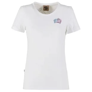 Nowoczesna damska koszulka bawełniana Light Ball Women's marki E9 z krótkim rękawem, z koronkowym materiałem na rękawach i dużym logo E9 na plecach. Damska koszulka z krótkim rękawem Light Ball Women's firmy E9 jest wykonana z 92% bawełny organicznej i 8% elastanu. Koszulka ma rękawy z koronki, które służą nie tylko do wentylacji, ale także jako element modny. Na plecach ma stylowy nadruk dużego logo E9. Wyprodukowano ją we Włoszech z minimalnym zanieczyszczeniem środowiska, z naciskiem na ekstrawaganckie wykonanie, unikalny design i komfort podczas wspinaczki.