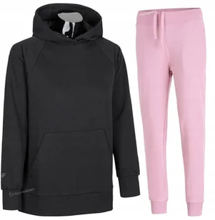 Damski dres sportowy 4F Marka/model: 4F SWSF725 / TROF0946 Kolor: Bluza czarna / spodnie jasne różowe Materiał:  80% bawełna, 20% poliester Nieocieplane wnętrze bluzy Ocieplane wnętrze spodni Kieszeń typu kangurek w bluzie Kieszenie spodnie: 2 boczne Ściągacz na dole i przy rękawach Zintegrowany kaptur O marce: