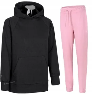 Damski dres sportowy 4F Marka/model: 4F SWSF725 / TROF1138 Kolor: Bluza czarna / spodnie jasne różowe Materiał: 80% bawełna, 20% poliester Nieocieplane wnętrze Kieszeń typu kangurek w bluzie Kieszenie spodnie: 2 boczne Ściągacz na dole i przy rękawach Zintegrowany kaptur O marce: