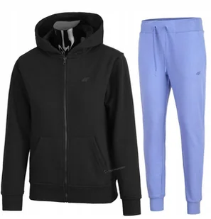 Damski dres sportowy 4F Marka/model: 4F SWSF1763 / TROF229 Kolor: Bluza czarna / spodnie lila Materiał bluza: 80% bawełna, 20% poliester Materiał spodnie: 77% bawełna, 23% poliester, Nieocieplane wnętrze 2 kieszenie boczne w bluzie 2 kieszenie boczne w spodniach Ściągacz na dole i przy rękawach Zintegrowany kaptur O marce: