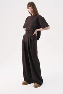 Brązowe klasyczne spodnie wykonane z wysokiej jakości dresówki to nowoczesna i stylowa odpowiedź na dobrze nam znane, zwykłe dresy. To połączenie wygody z elegancką linią, dzięki czemu świetnie sprawdzają ...