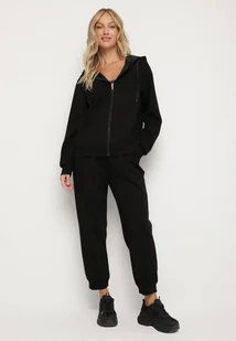 Czarny Komplet Dresowy Rozpinana Bluza i Spodnie Joggery z Bawełną Anarrise