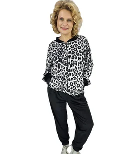 Dres spodnie bluza komplet welurowy cętki panterka LAWINIA-L/XL