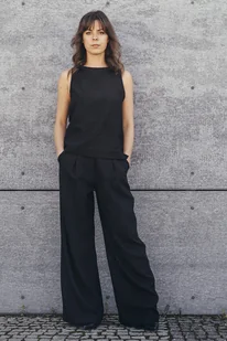 Echo wiskozowe spodnie z szerokimi nogawkami – czarne to idealny dodatek do każdej garderoby, który stanie się nieodłącznym elementem Twoich stylizacji. Ich szerokie nogawki płyną przy każdym kroku, co daje u ...